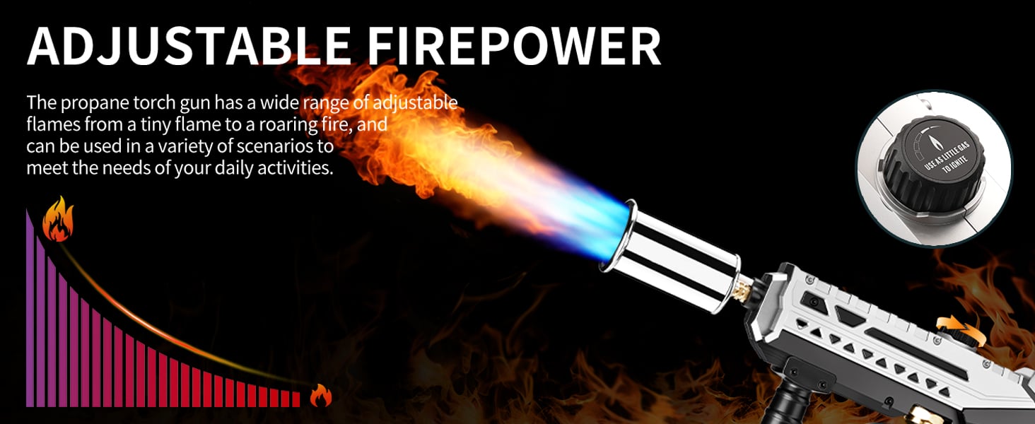 🔥 Precision Flame Control for Every TaskThe Propane Torch Gun offers a wide range of adjustable flames—from a gentle, focused flare to a powerful, roaring torch. Whether you're lighting charcoal, searing steak, starting a campfire, or managing weeds, our torch ensures the right flame for the right job.